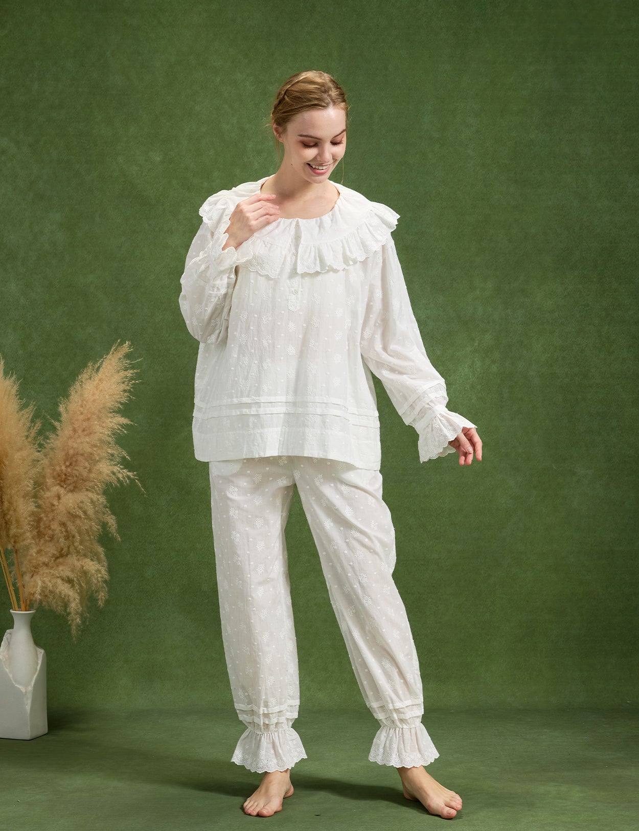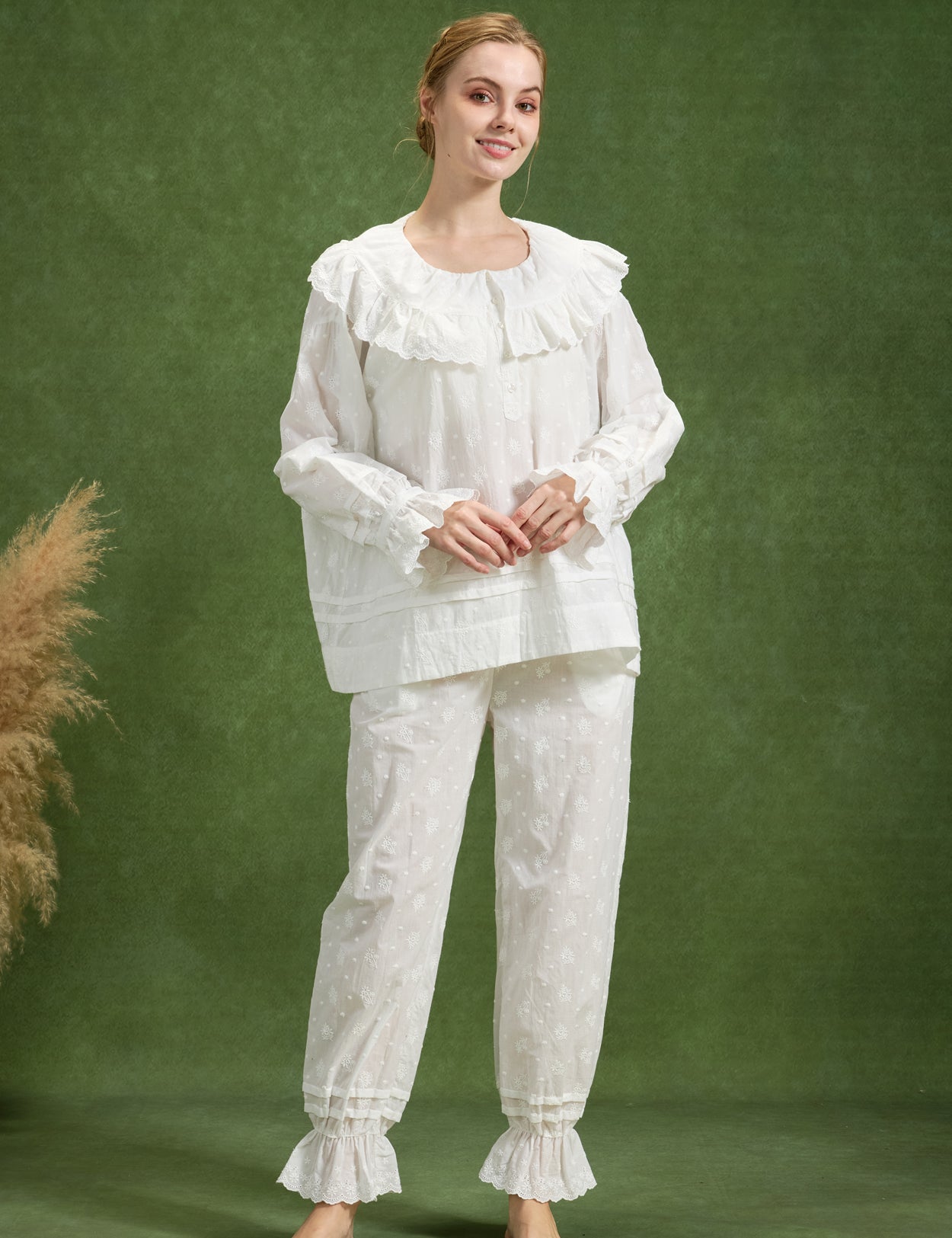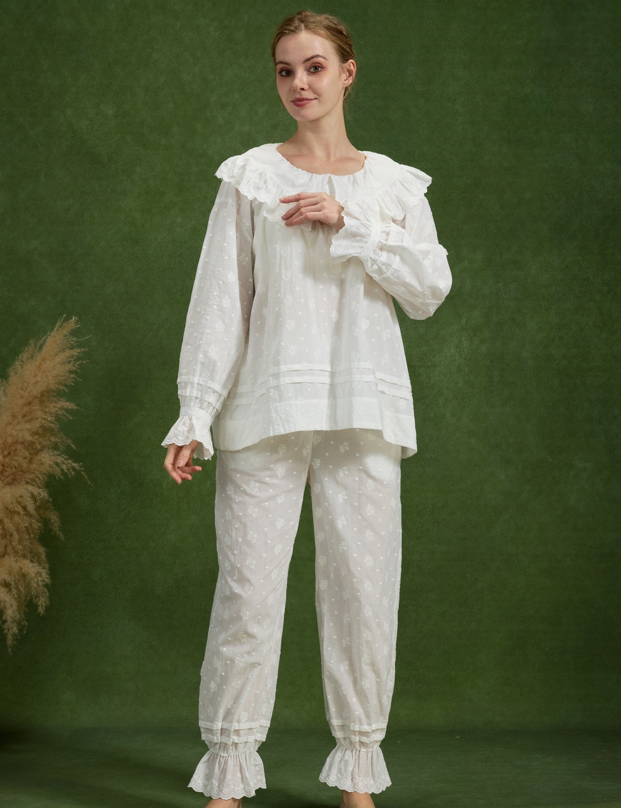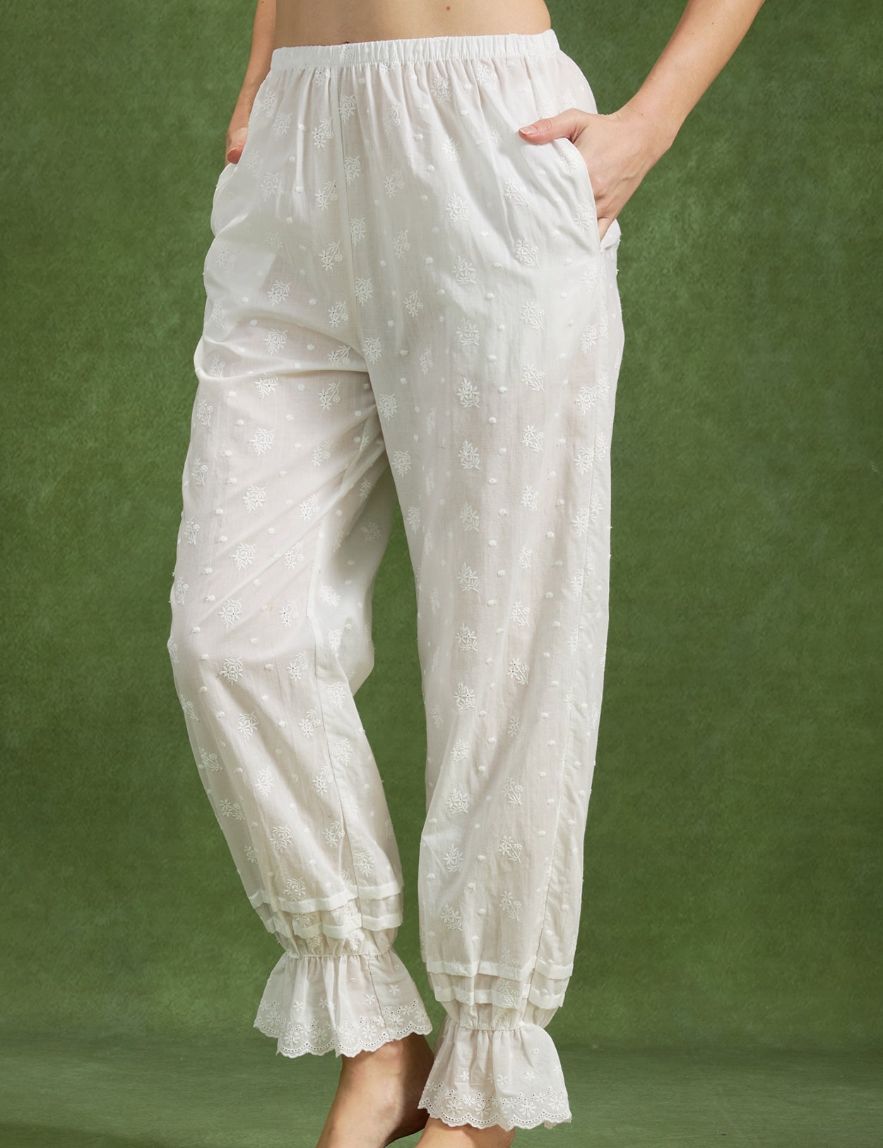 Floral Embroidery 100% Cotton Ankle Cuffs Pants