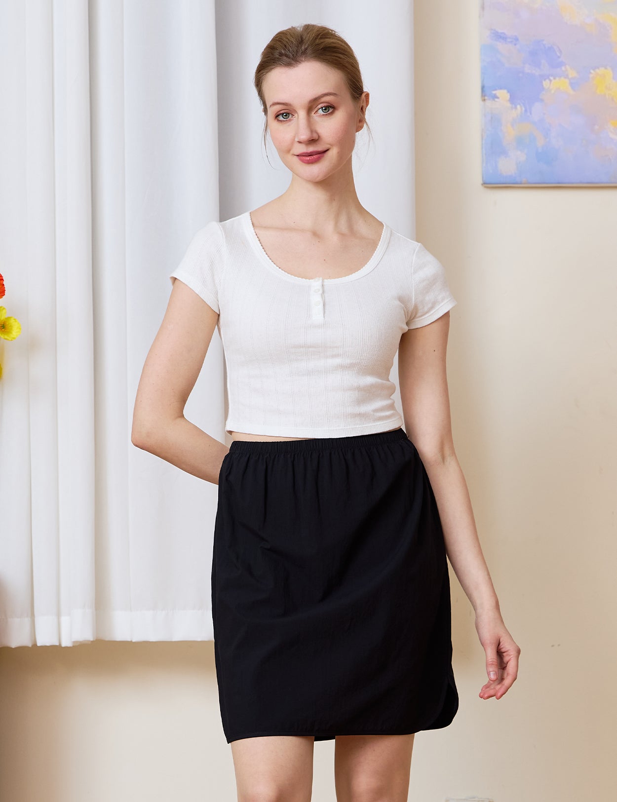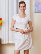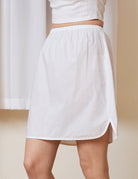 Crafted from soft, lightweight 100% cotton, this breathable underskirt provides a skin-friendly layer for all-day comfort. Unlike standard slips, it is thoughtfully designed with a comfortable elastic waistband, distinctive curved side slits, and a rounded hem, offering effortless movement without adding bulk to your silhouette.
