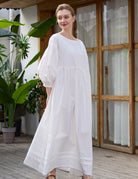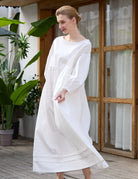 Inspired by the relaxed, flowing nightgowns of the Victorian era, this beautiful white cotton dress embraces timeless vintage charm. It offers a completely loose, forgiving silhouette that brings old-world elegance and ultimate ease into your daily routine.