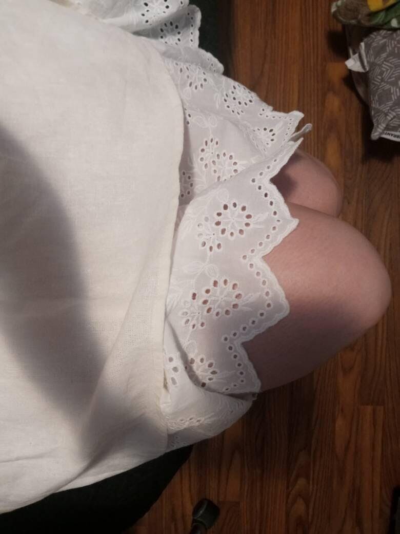 Indulge in the feel of 100% cotton with our crafted half slip. It boasts a soft, anti-static, and breathable fabric that provides a cool sensation against your skin. Revel in a perfect fit with our comfortable elastic waistband, available in five sizes to ensure it never tightens around your waist. Effortlessly elevate your skirt or dress with our skirt extender, embellished with delicate eyelet lace trim and subtle embroidery for an elegant touch. Additionally, it can be worn as a petticoat, seamlessly complementing vintage dresses or Edwardian lawn dresses for an added touch of fullness. Ideal for enhancing the charm of see-through and unlined dresses.