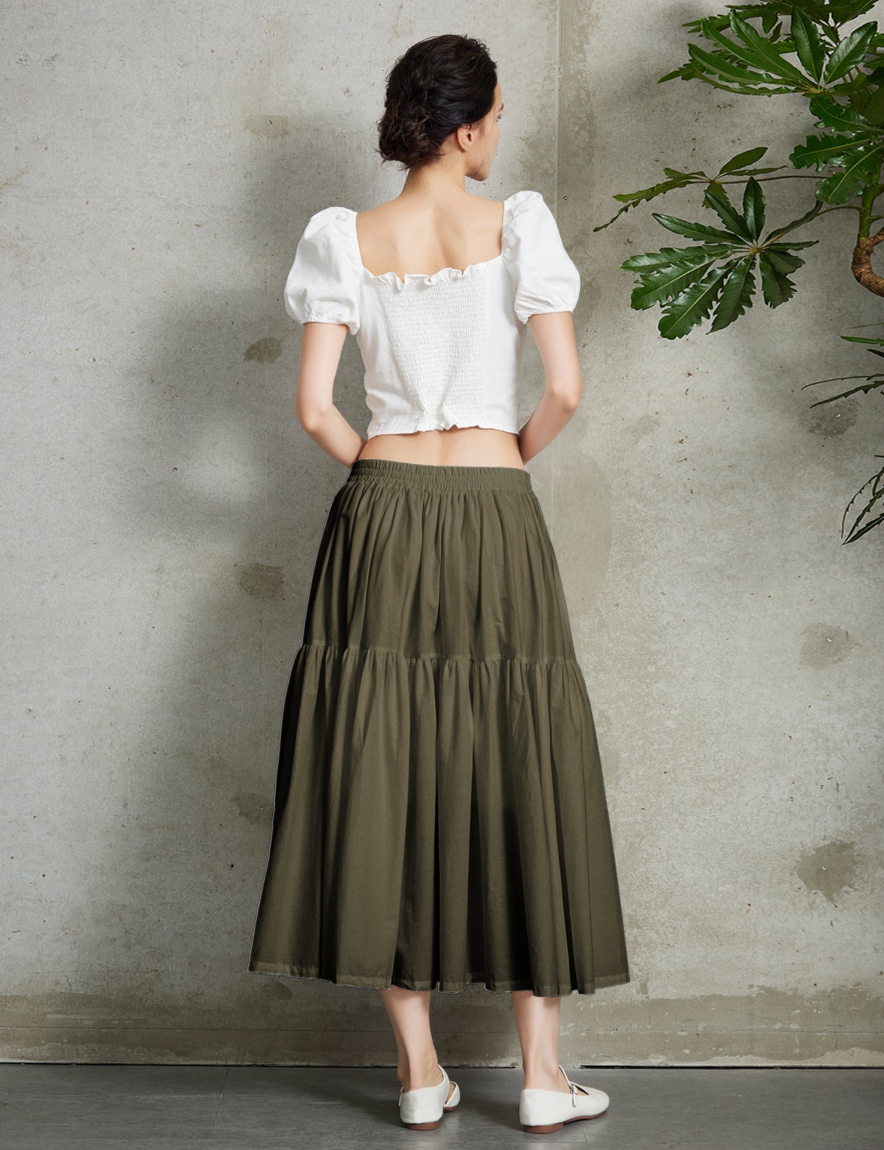Introducing our comfortable 100% cotton Isadora maxi skirt, featuring anti-static, breathable, and durable qualities. Designed without lining for a versatile and regular skirt appearance, the handmade fluffy maxi skirt boasts a generous amount of fabric, creating a lush pleated design for free movement and enthusiasts of folk dance. It's available in four colors: white, ivory, brown, and black, offering versatile and flattering options suitable for all seasons. Ideal for photography, trips, vacations, costumes, and stage performances, it can also be styled for the Renaissance, Colonial, Victorian, and Pioneer eras.