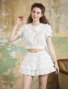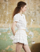 White Cotton Ruffled Mini Skort with Elastic Waist