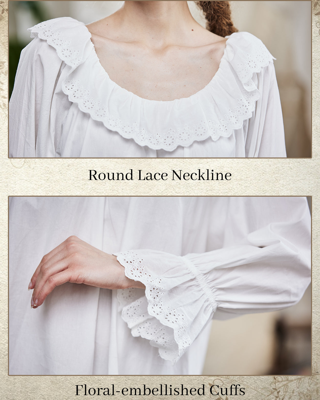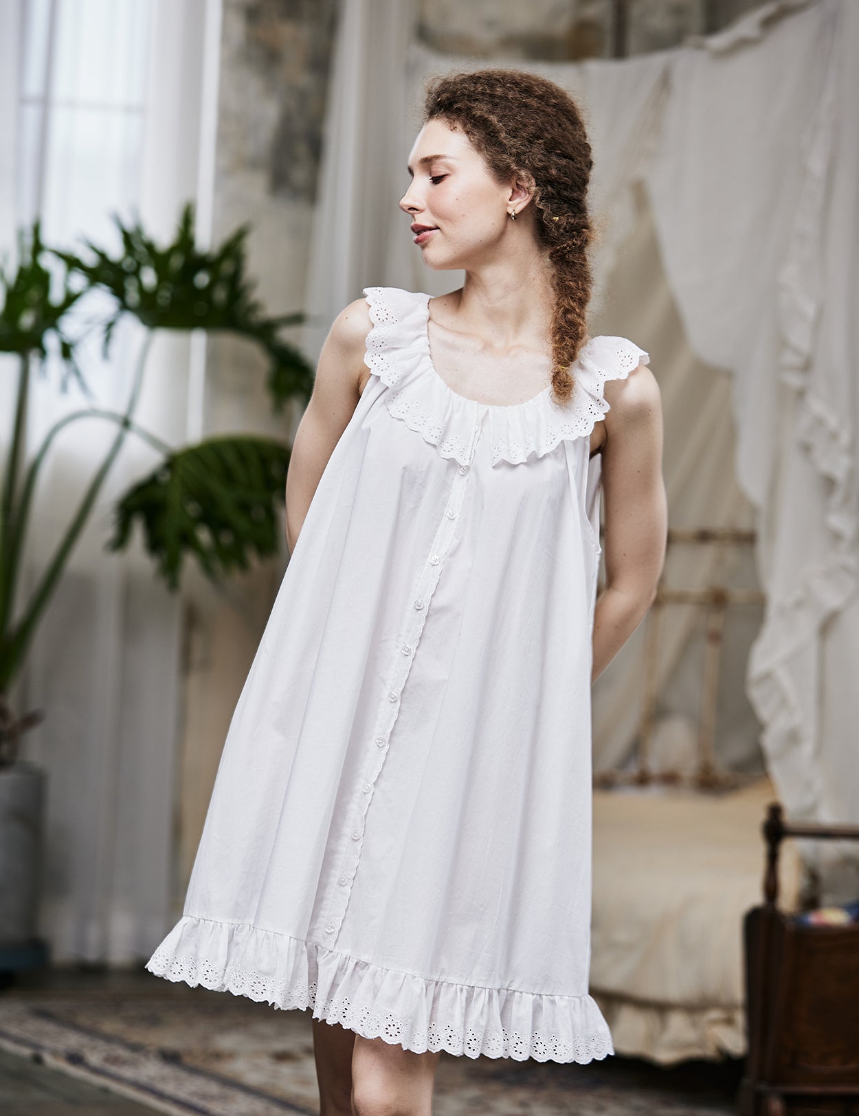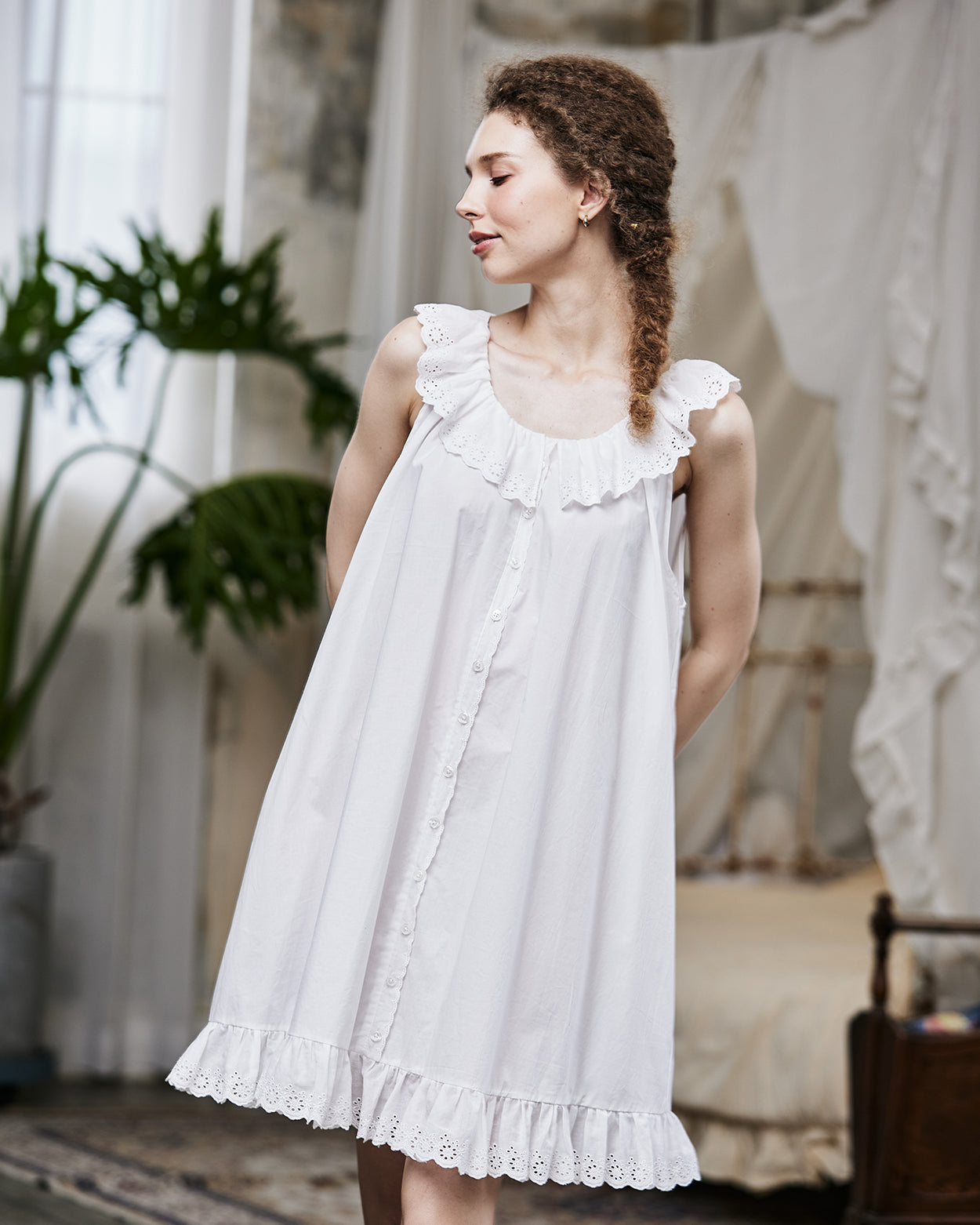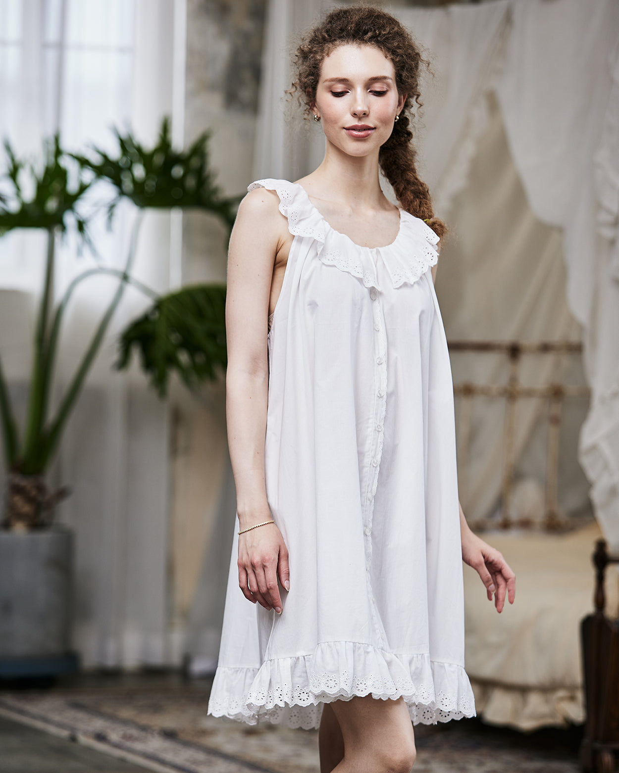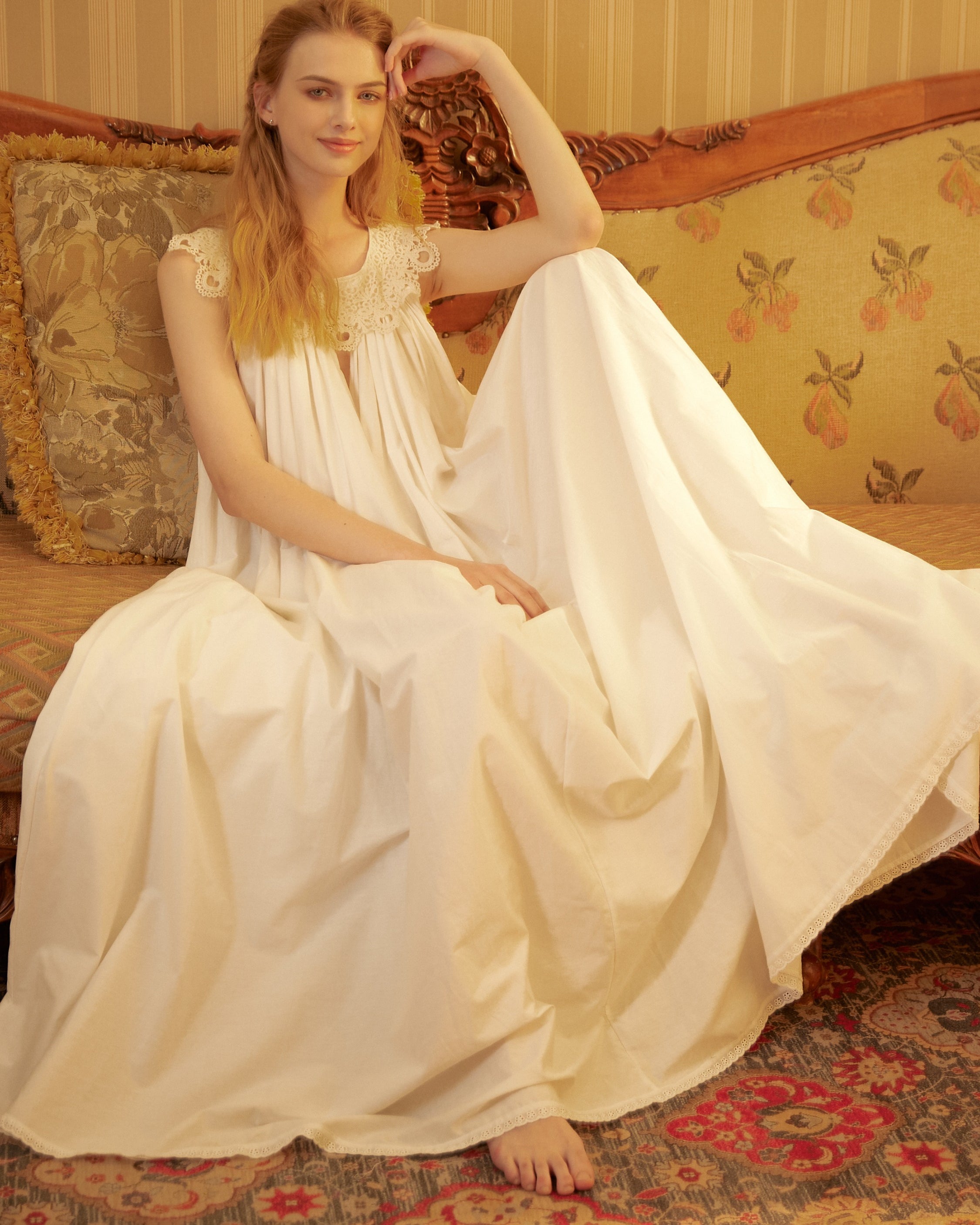 Discover old-fashioned white sleepwear with lace, embroidery, and a flowing silhouette that marries retro aesthetics with modern wearability—only at Sueasyretro.