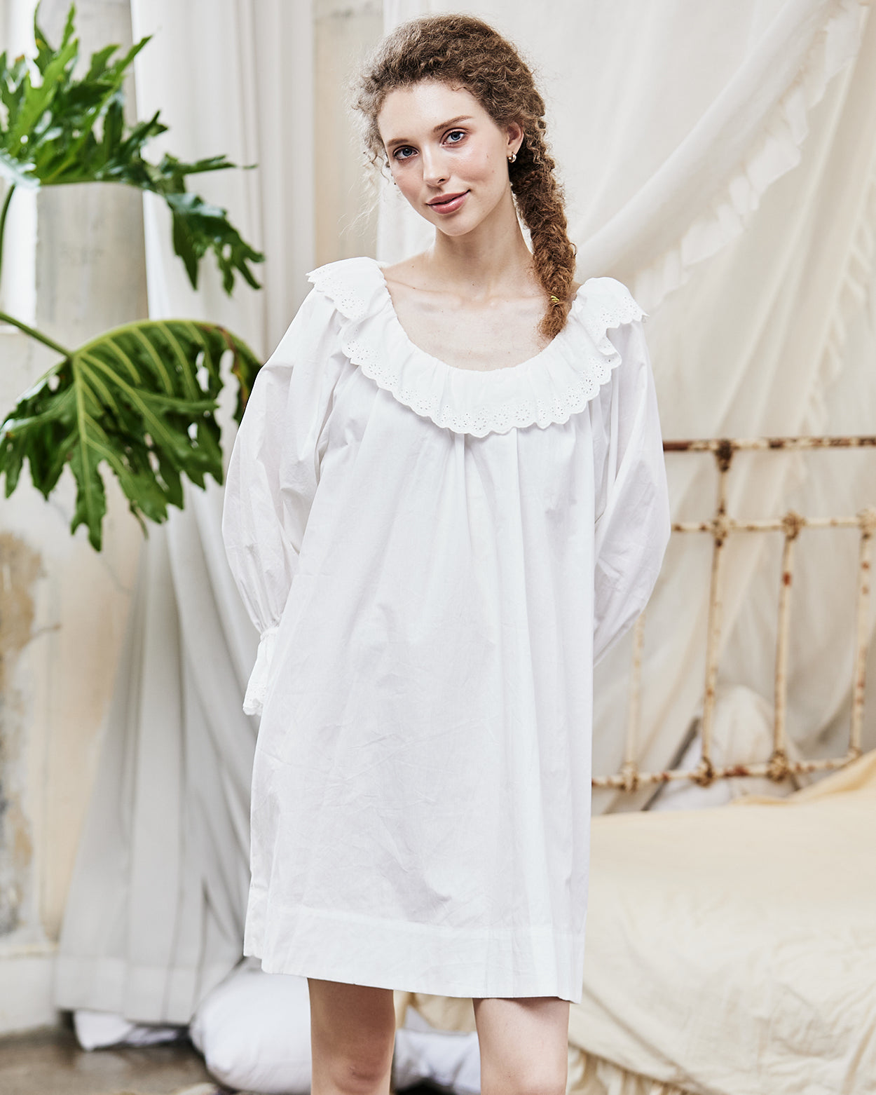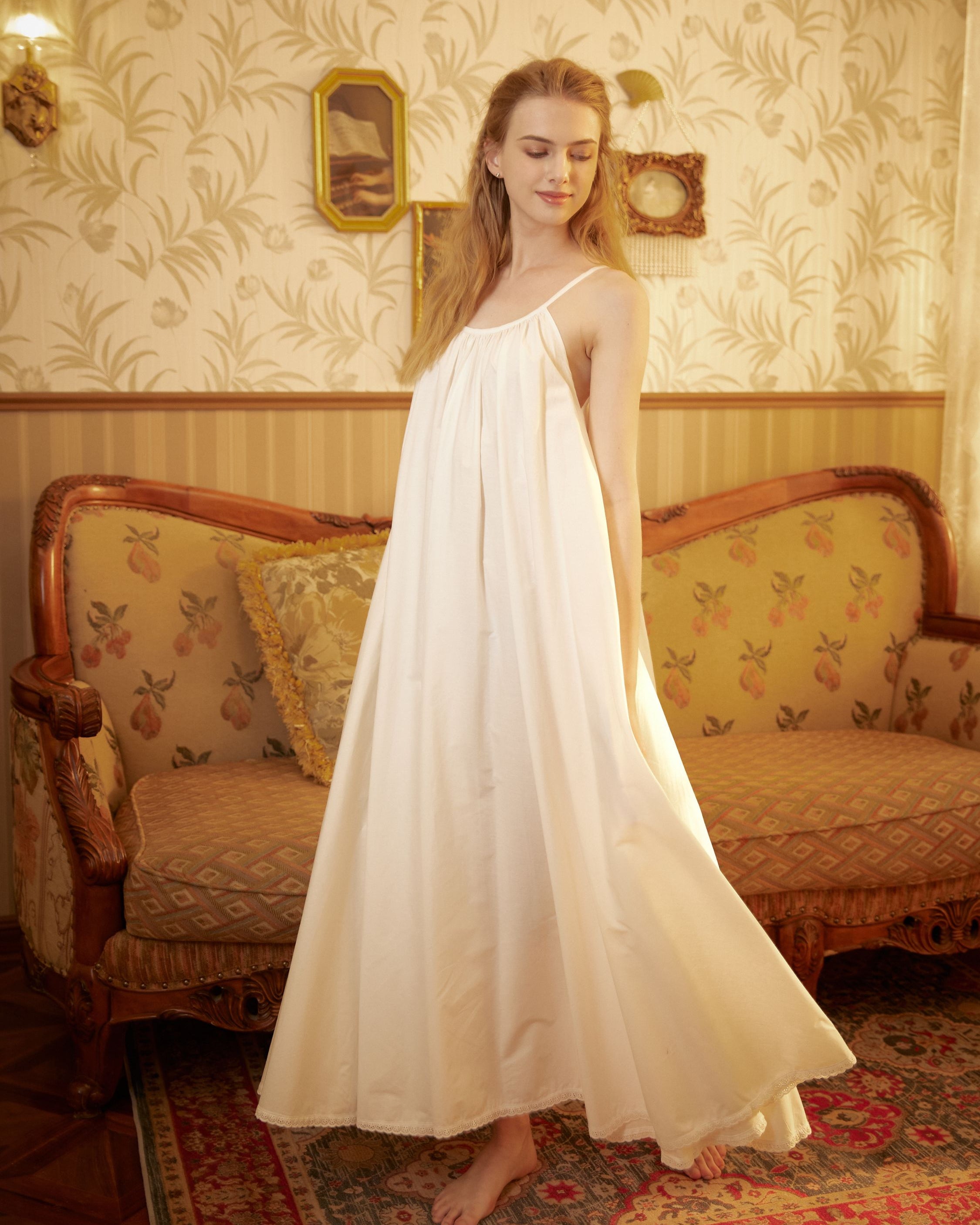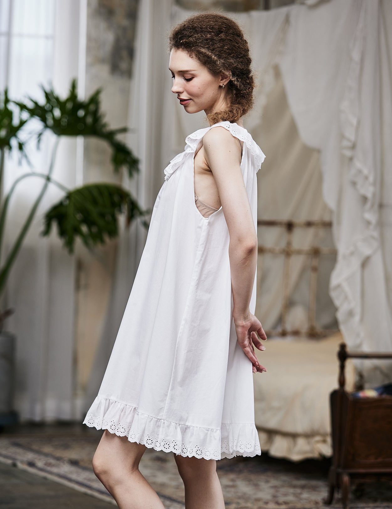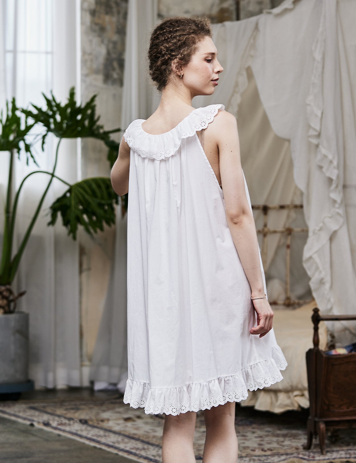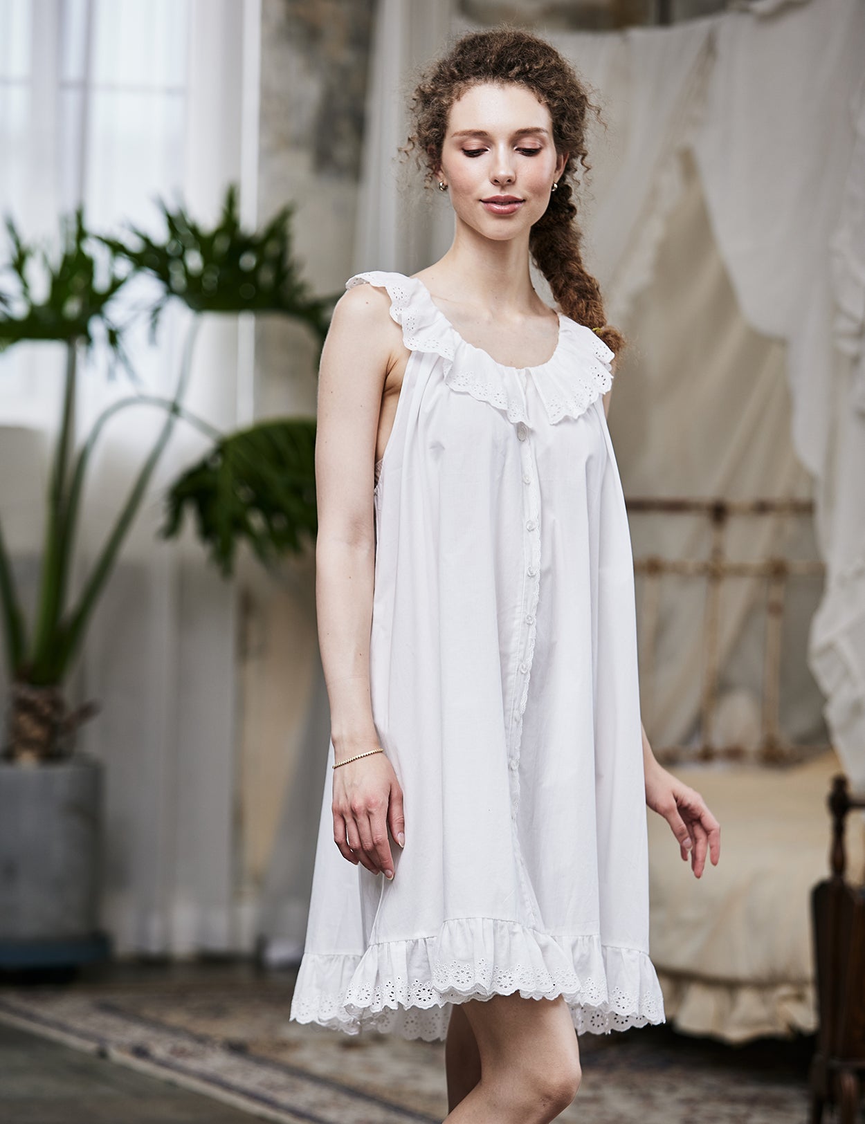 Discover old-fashioned white sleepwear with lace, embroidery, and a flowing silhouette that marries retro aesthetics with modern wearability—only at Sueasyretro.