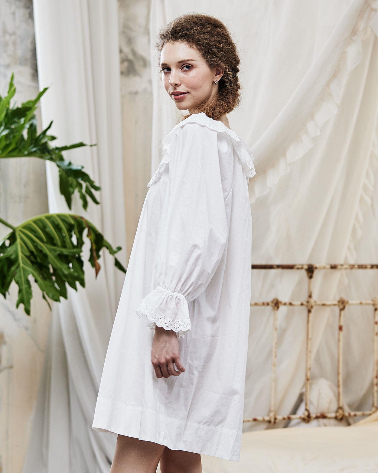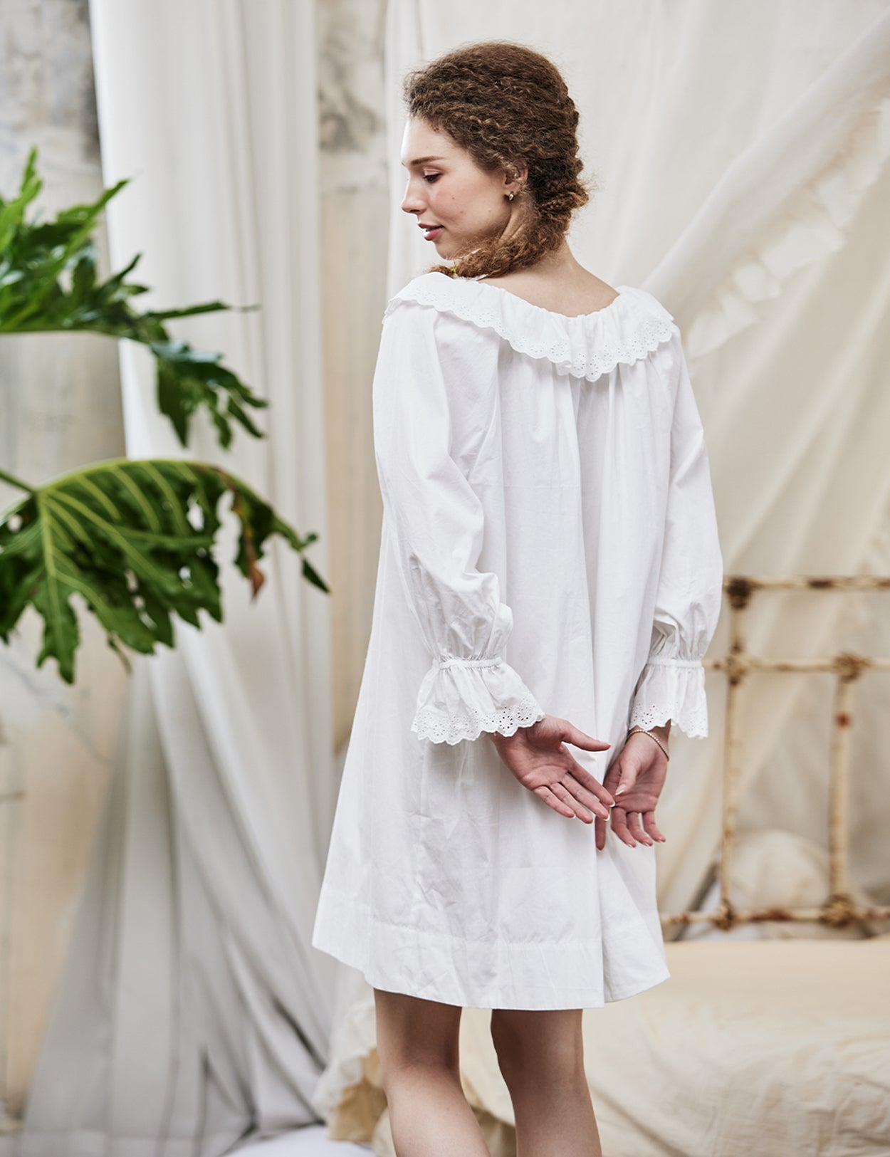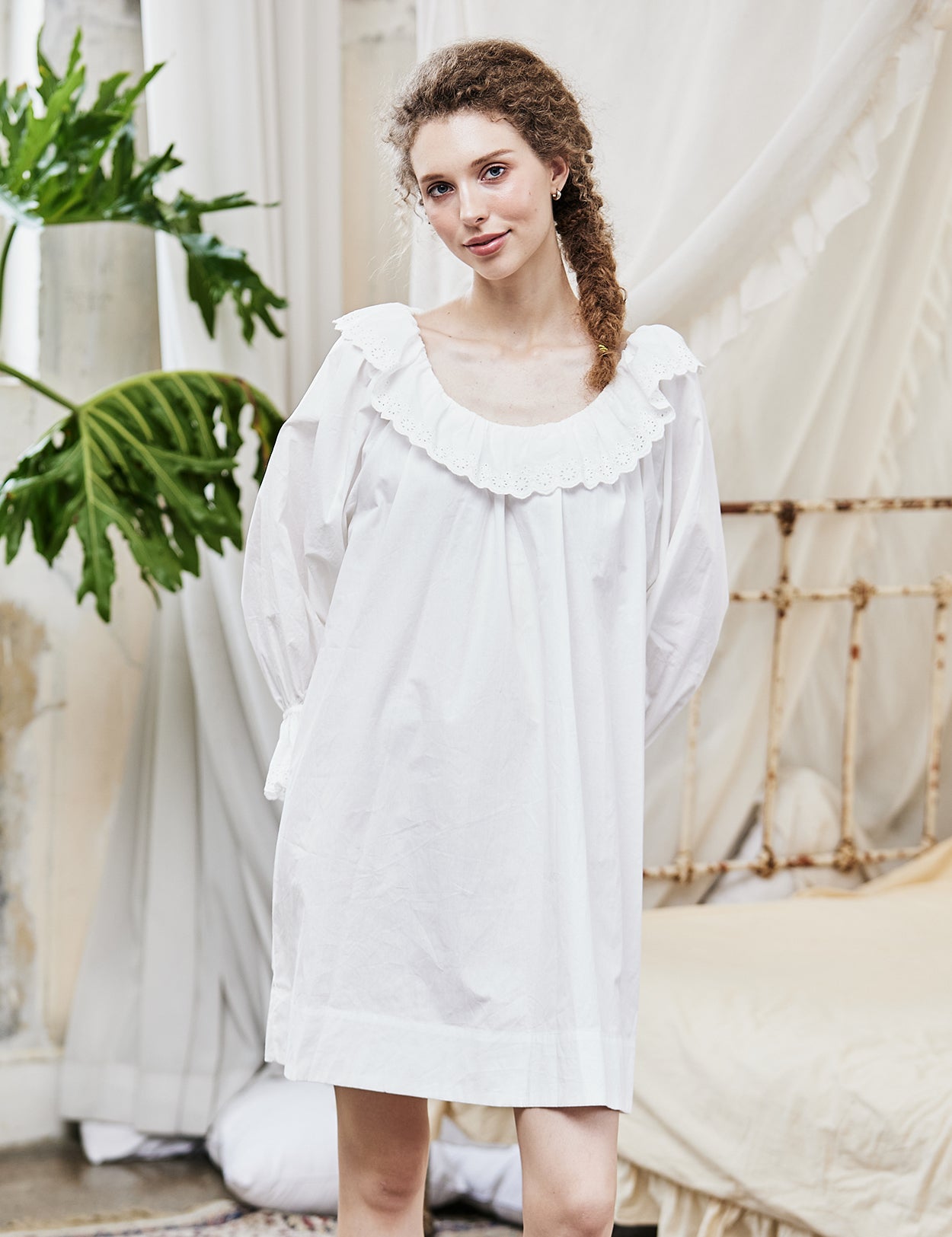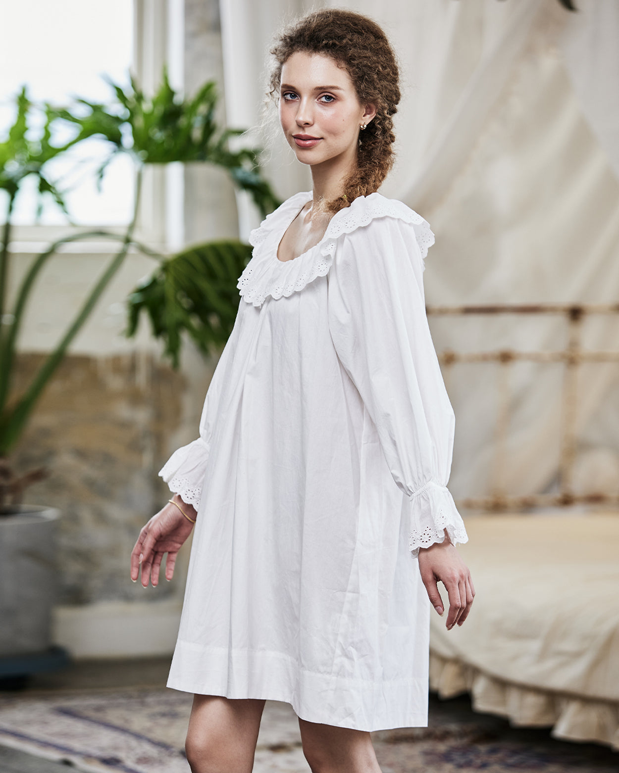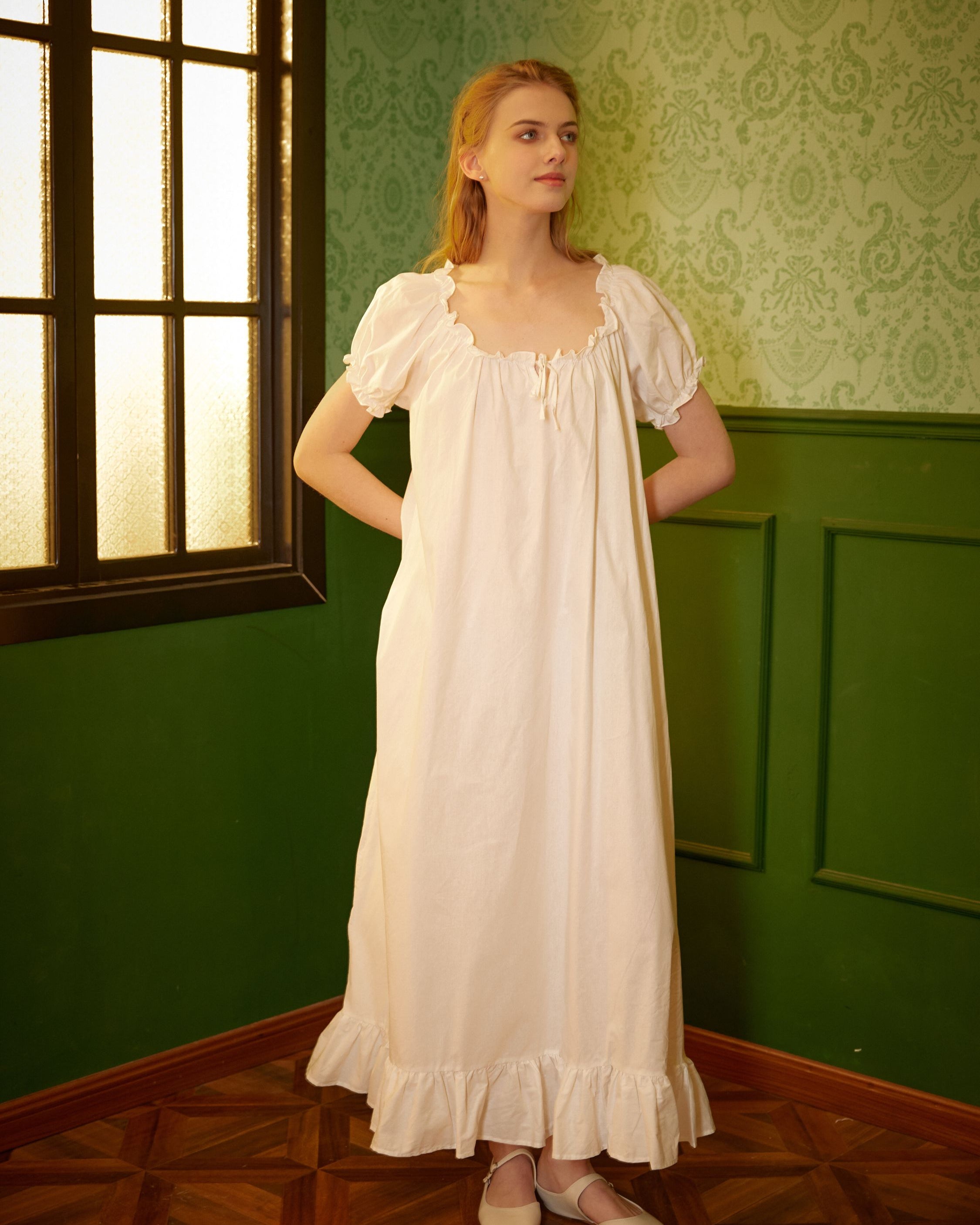 Discover old-fashioned white sleepwear with lace, embroidery, and a flowing silhouette that marries retro aesthetics with modern wearability—only at Sueasyretro.