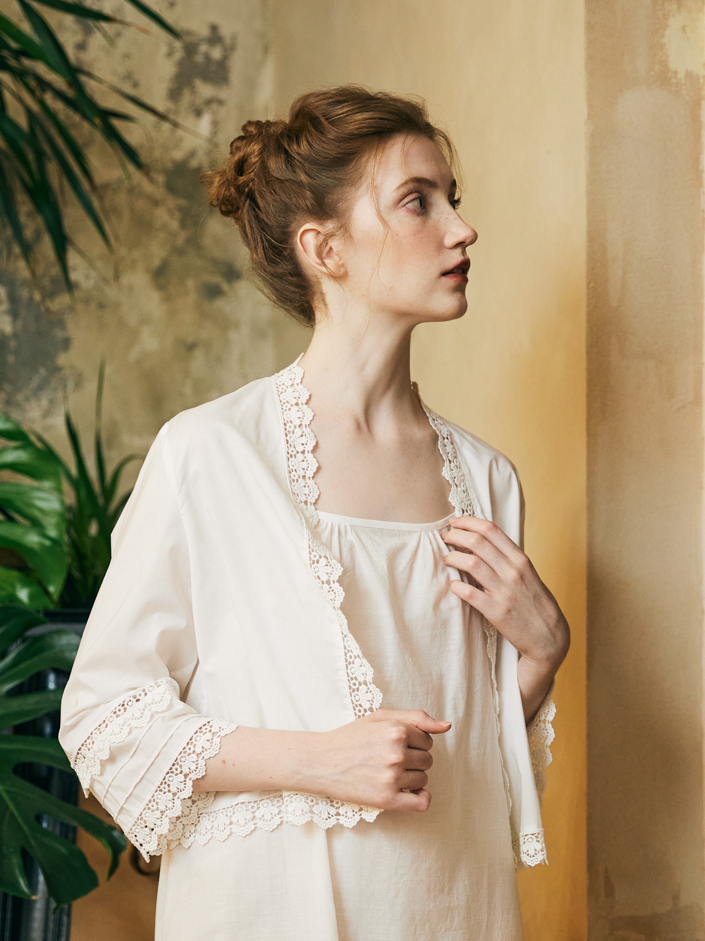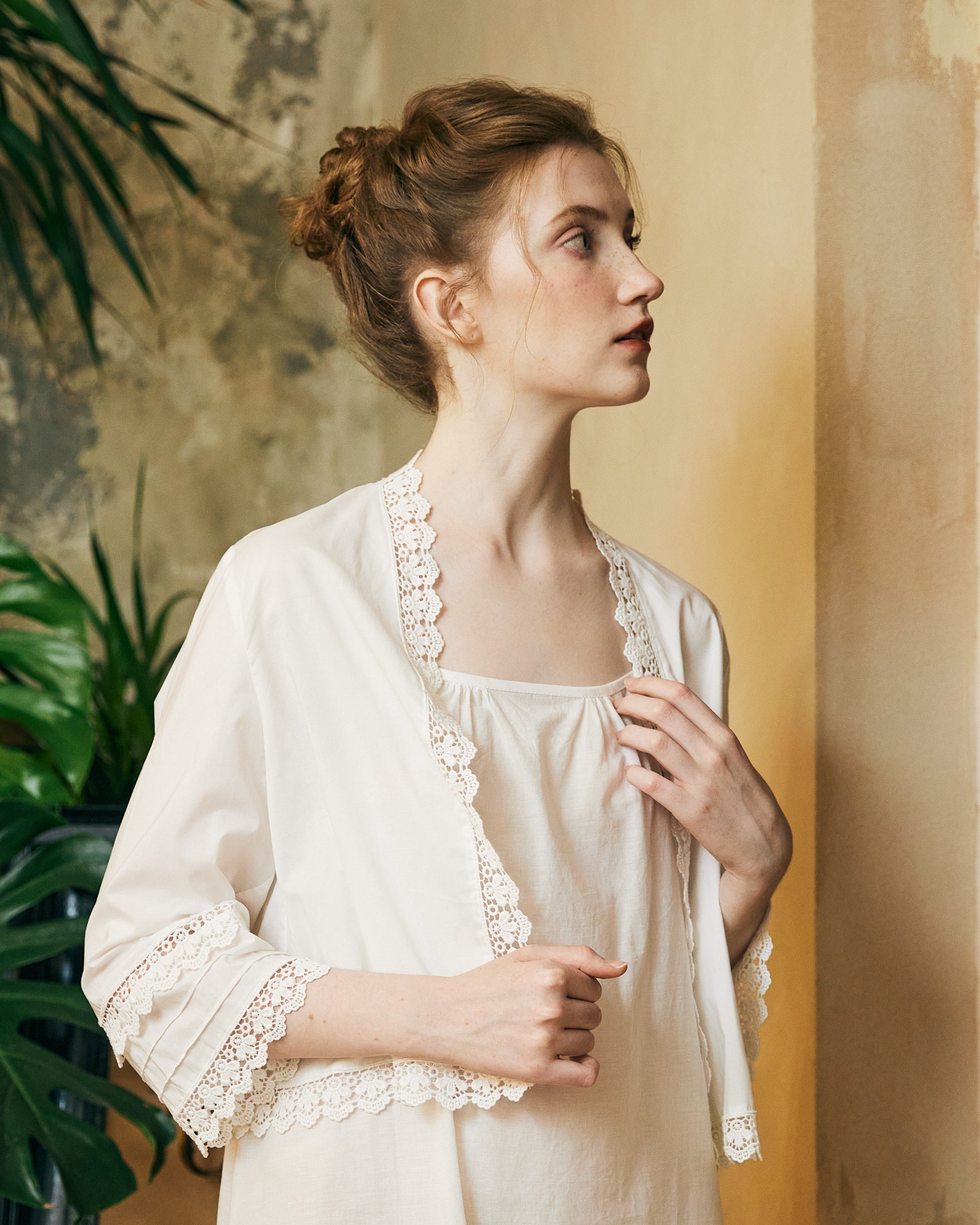 Our women’s sleepwear collection draws inspiration from Victorian romance and Edwardian sophistication, featuring white-led handmade sleep sets and standalone nightdresses with understated, simple designs—enhanced by delicate lace borders, handcrafted embroidery, and a beautifully flowing fit.