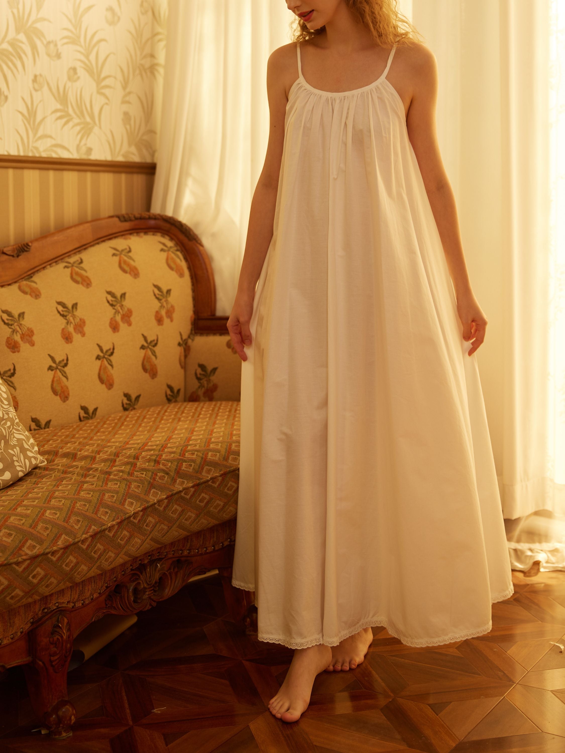 Nightgown 100% Cotton Victorian Women Spaghetti Strap