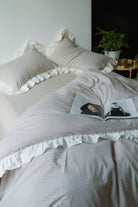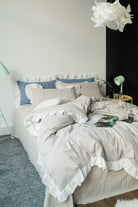 Beige Ruffle Duvet Cover Set - 100% Washed Cotton, Vintage Farmhouse Bedding