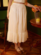 Halber Slip aus Baumwolle, Petticoat, Rockverlängerung, Slip, Hohlblumen, Spitze, Unterrock, Vintage-inspirierter Unterrock, Elfenbein