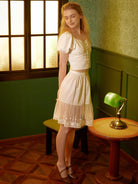 Verschönern Sie Ihren Rock oder Ihr Kleid mühelos mit unserem Rockverlängerer, der mit zarter Spitze verziert ist und ihm eine elegante Note verleiht. Dieses vielseitige Stück passt zu Röcken unterschiedlicher Länge und kann auch als Unterrock getragen werden. Es verleiht Vintage-Kleidern oder edwardianischen Batistkleidern einen Hauch von Eleganz.