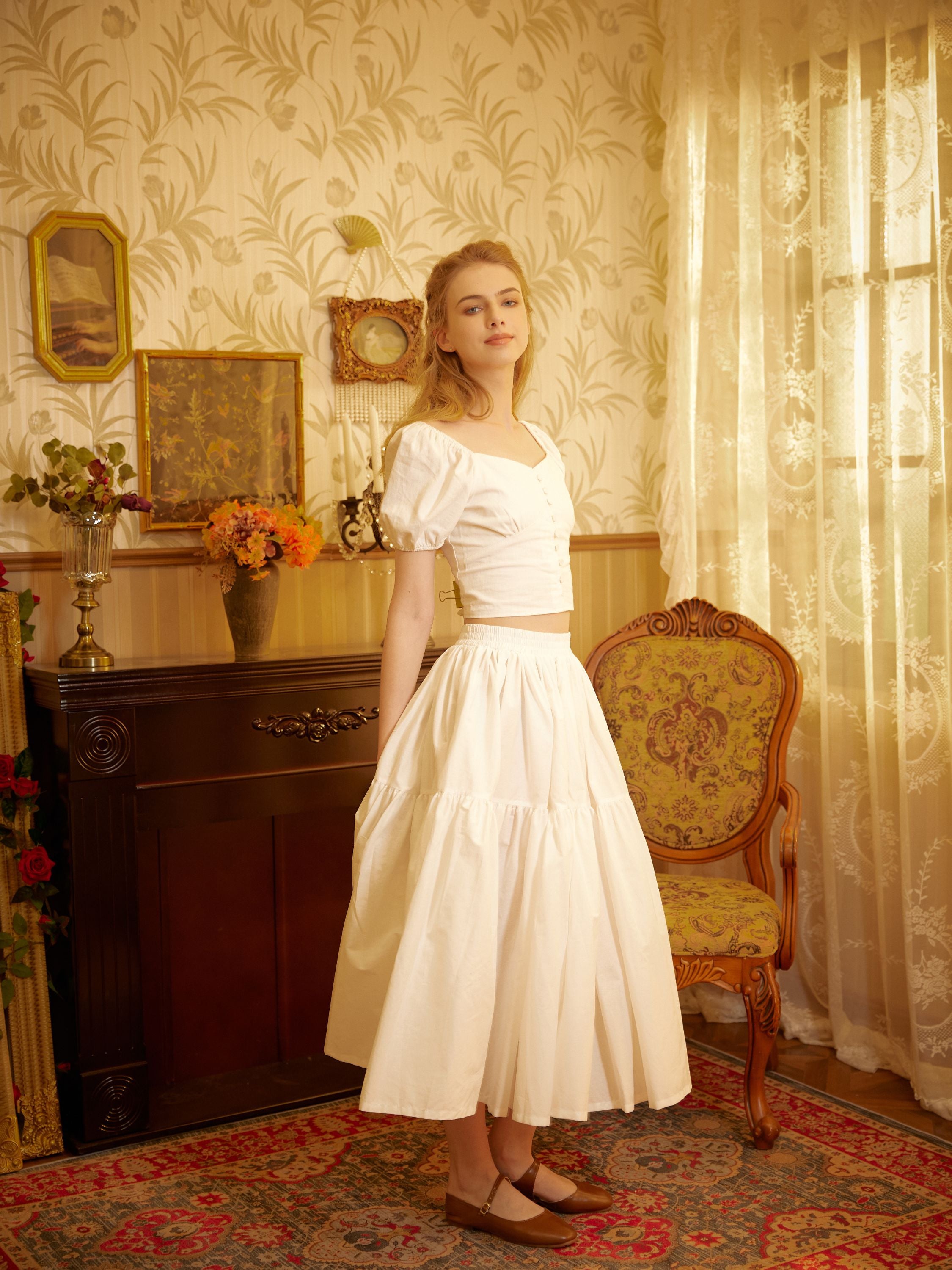 Wir präsentieren unseren bequemen Maxirock aus 100 % Baumwolle – antistatisch, atmungsaktiv und strapazierfähig. Der handgefertigte, flauschige Maxirock ist ungefüttert und bietet so einen vielseitigen und regulären Rocklook. Dank großzügigem Stoffanteil entsteht ein üppiges Faltendesign für Bewegungsfreiheit und Volkstanzbegeisterte. Er ist in vier Farben erhältlich: Weiß, Elfenbein, Braun und Schwarz und bietet vielseitige und schmeichelhafte Optionen für alle Jahreszeiten. Ideal für Fotografie, Reisen, Urlaub, Kostüme und Bühnenauftritte, lässt er sich aber auch im Stil der Renaissance, Kolonialzeit, Viktorianischen Zeit und Pionierzeit stylen.