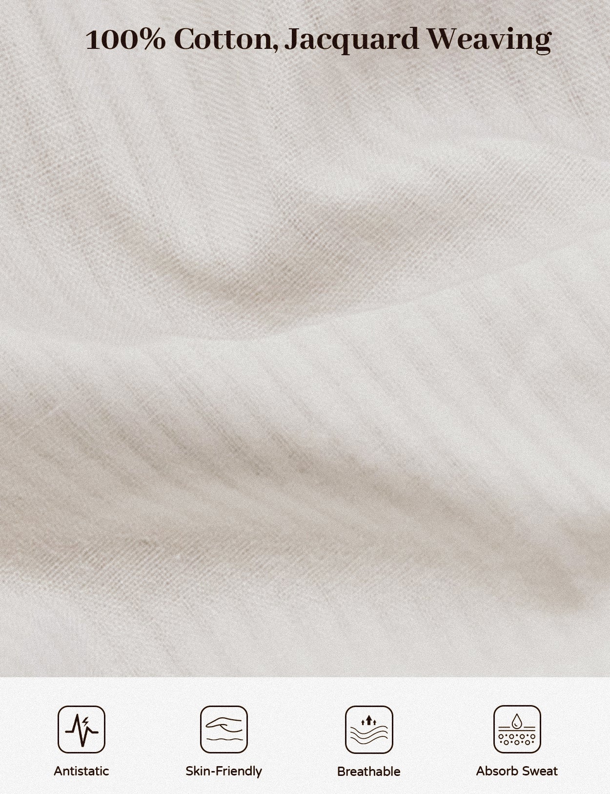 - Tejido Jacquard Elegante: Rayas jacquard verticales distintivas crean un aspecto limpio y texturizado, ofreciendo interés visual más allá de la tela simple.