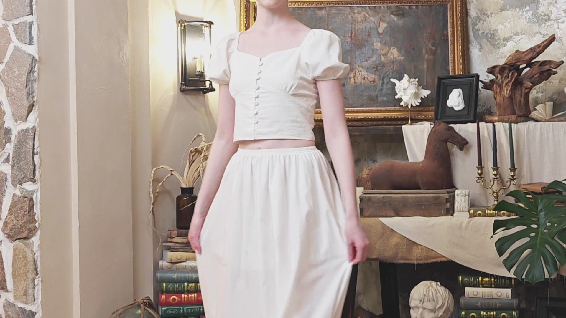 Un chemisier blanc se marie toujours parfaitement avec une jupe assortie.