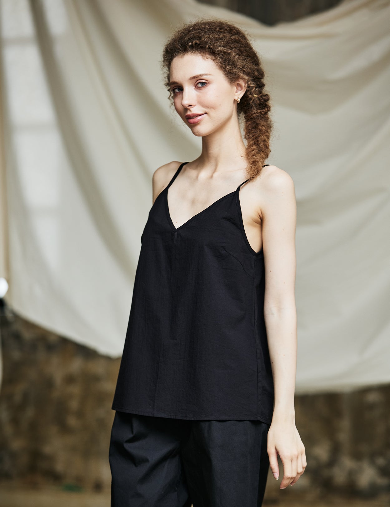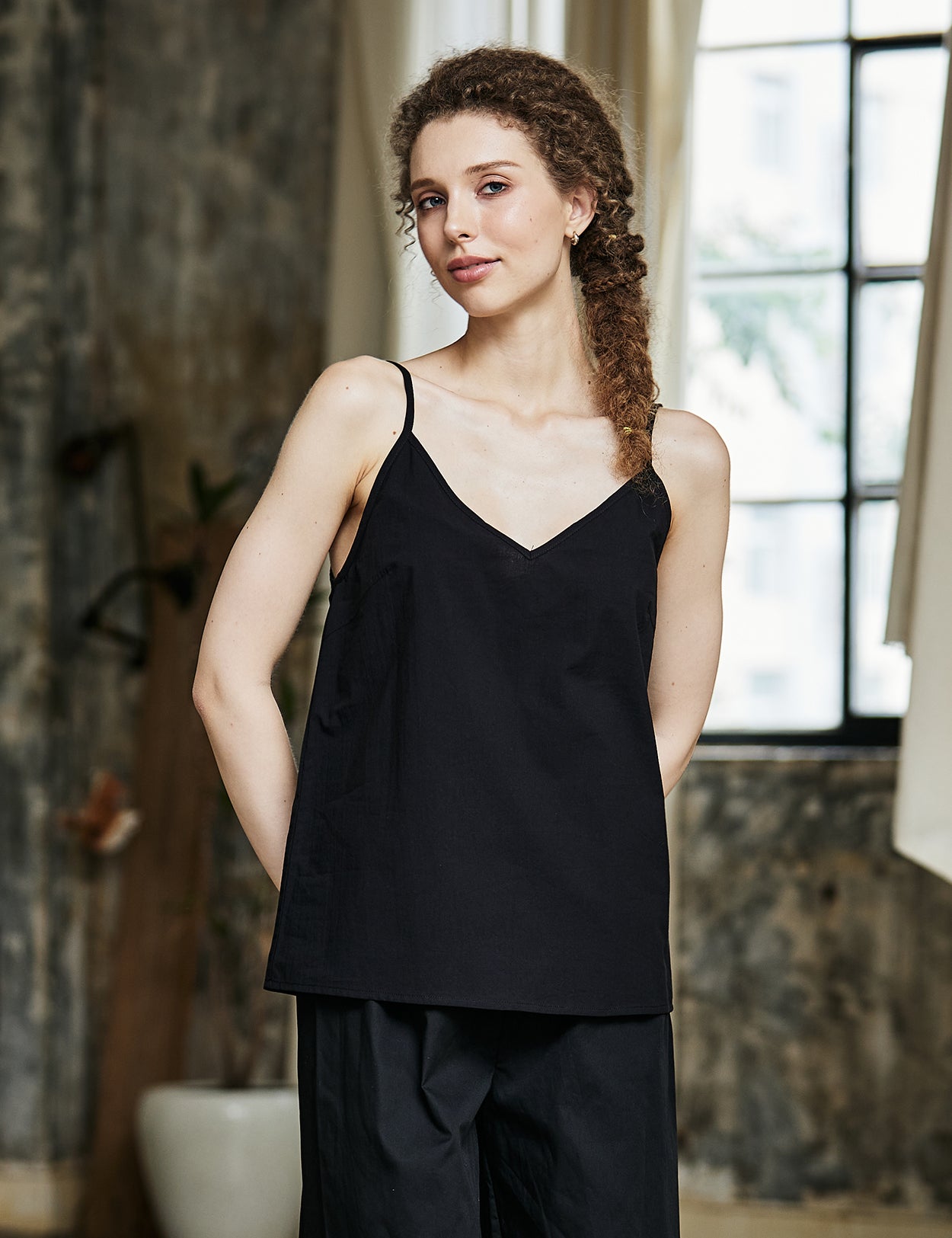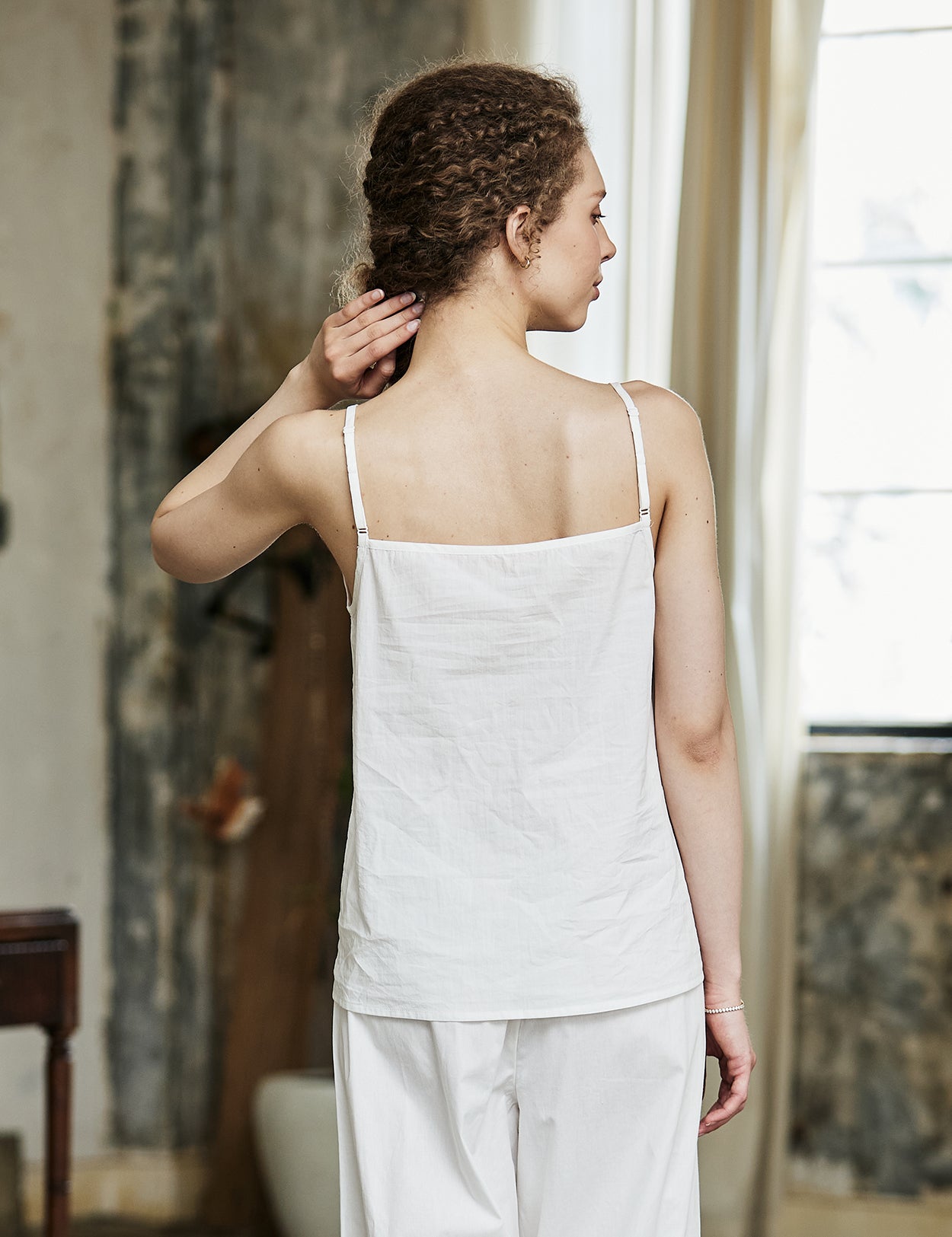 Coton biologique haut court sans manches femmes été haut blanc chemisier débardeur recadrée Swing débardeur coton chemise ivoire Cami