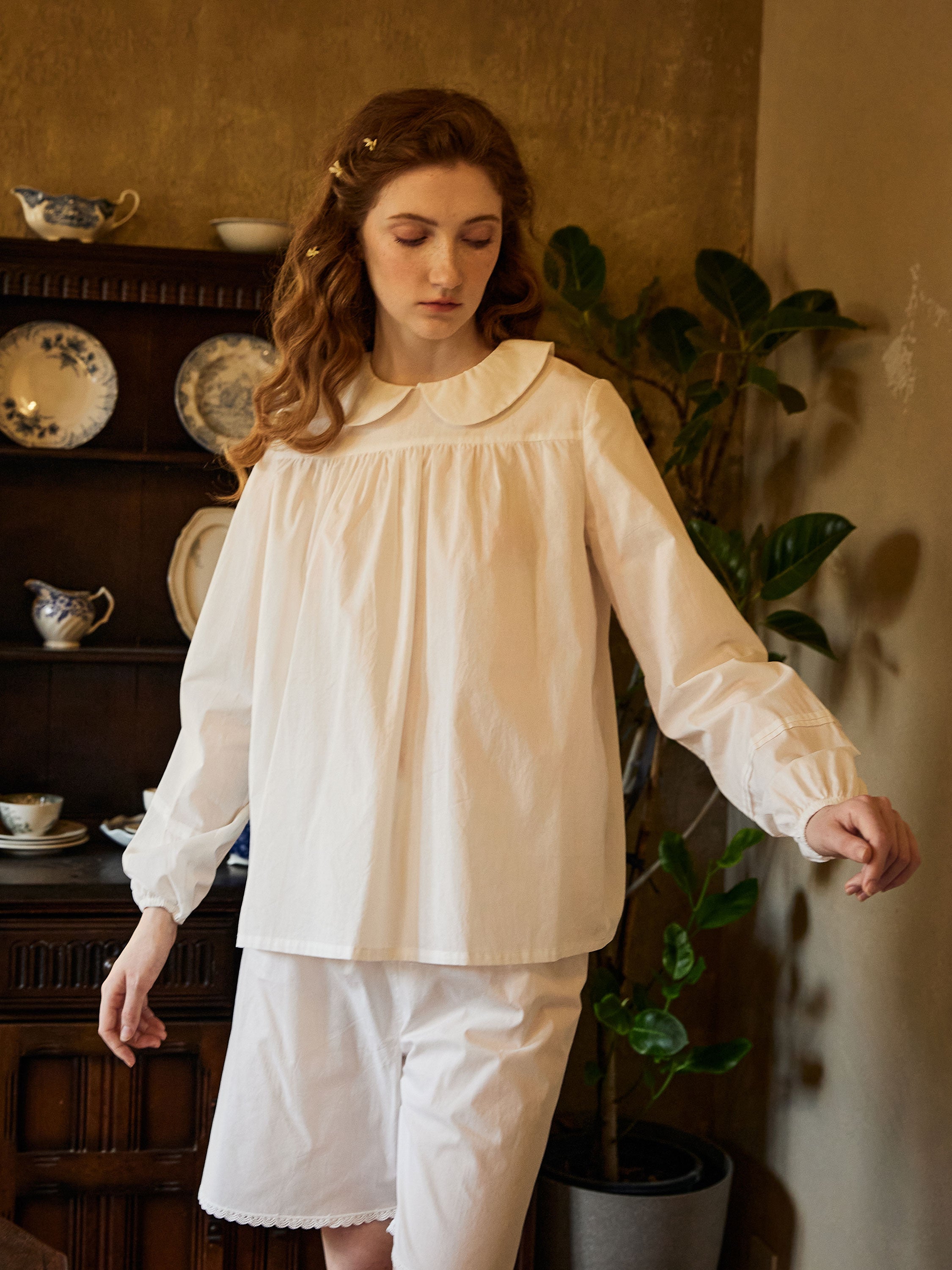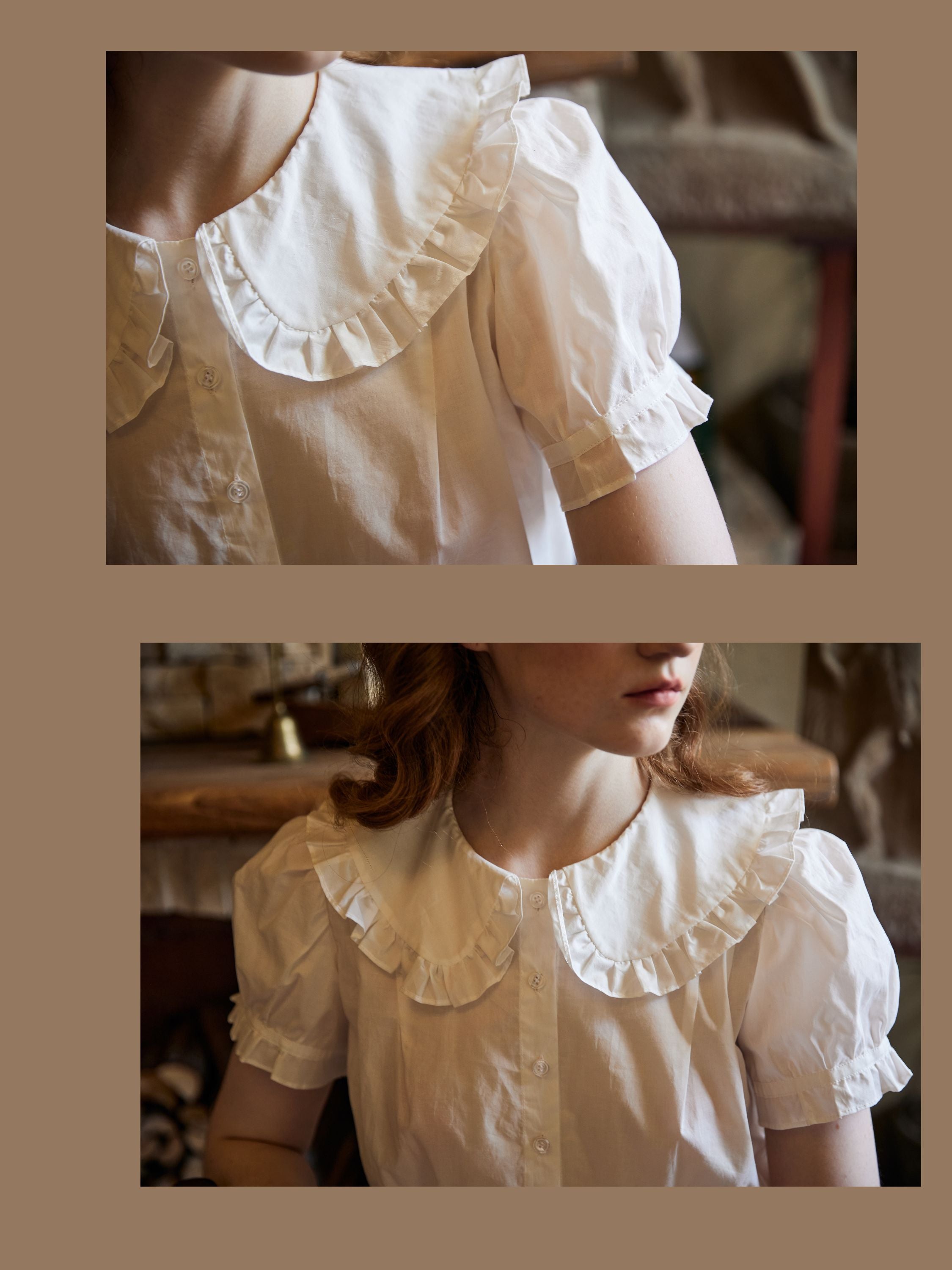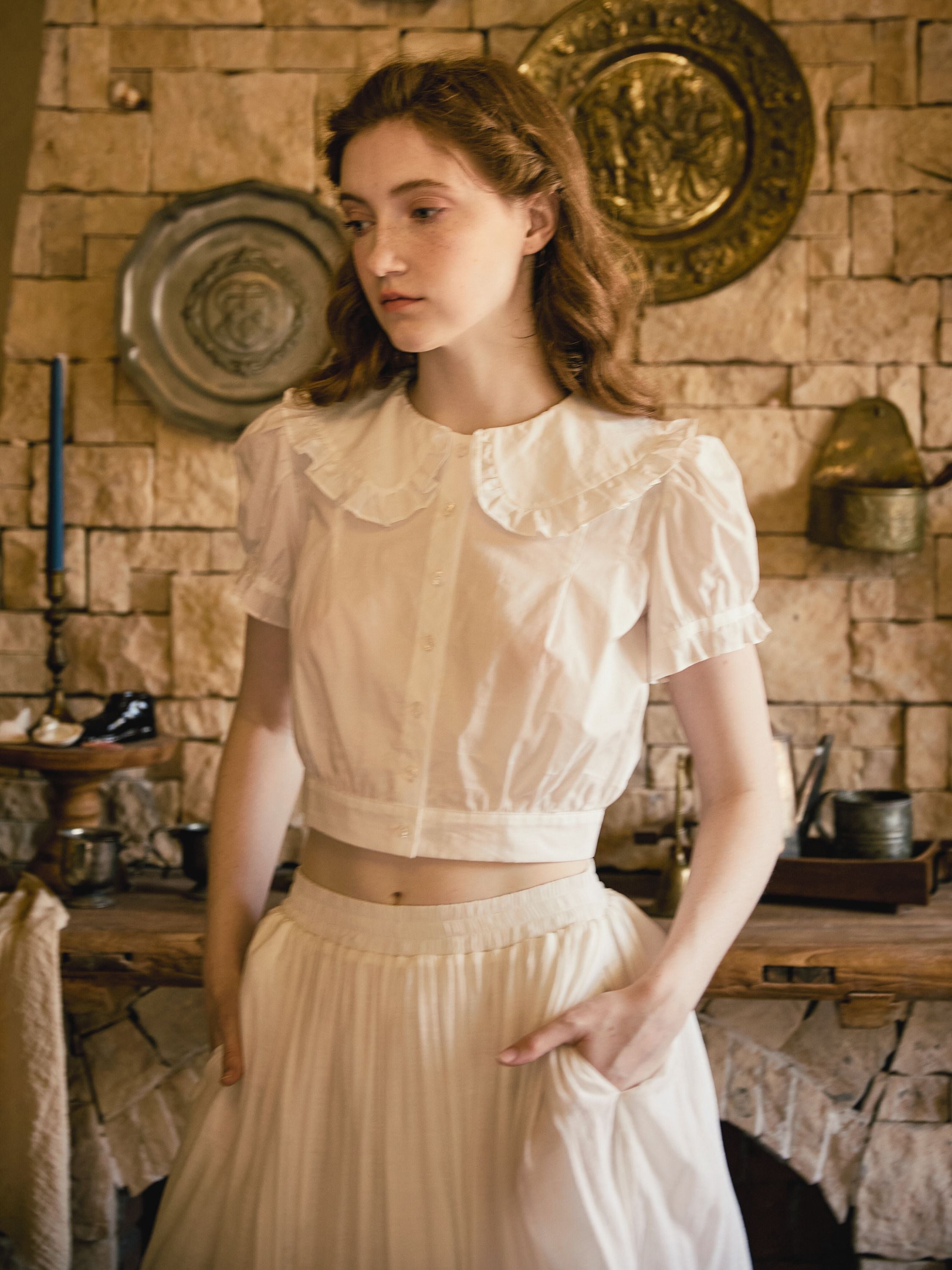 Haut court 100 % coton d'inspiration vintage - Col Claudine et manches bouffantes à volants