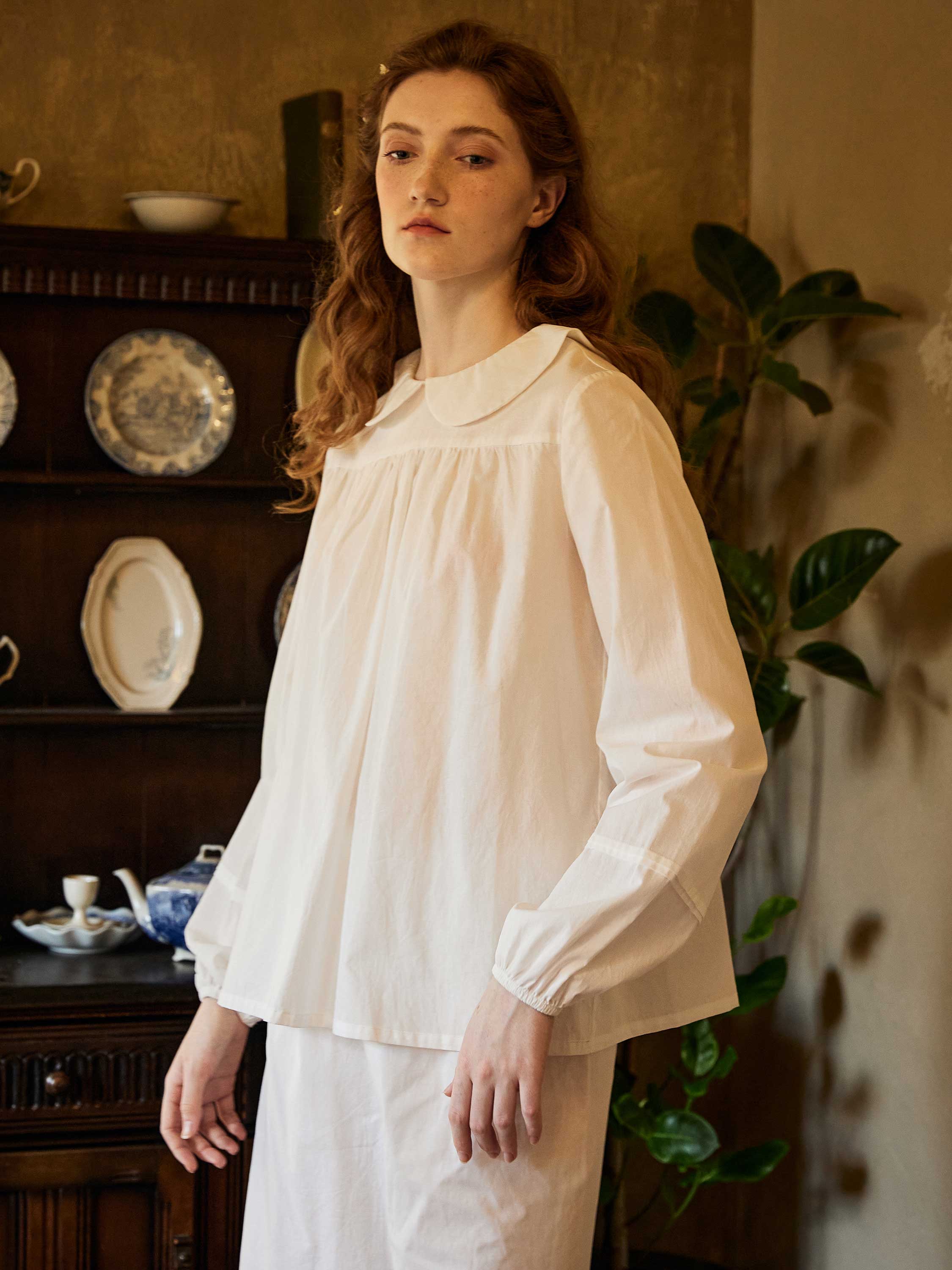 Chemisier en coton d'inspiration victorienne, chemise décontractée rétro