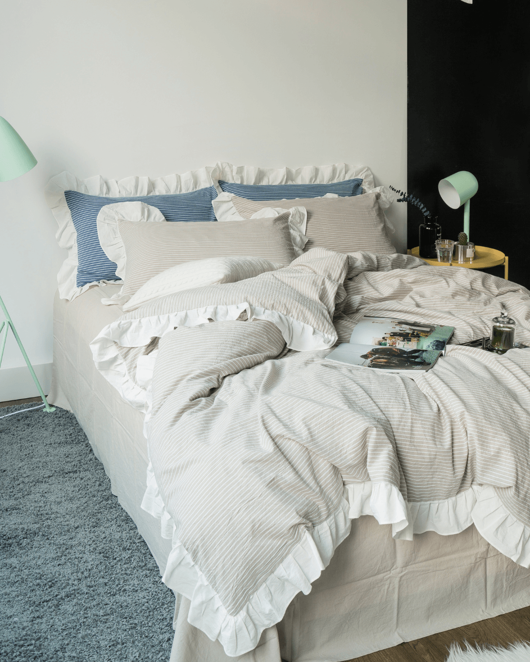 Conçue dans un style champêtre classique et rustique, elle allie douceur féminine et simplicité rustique : sans fioritures, juste un charme vintage intemporel. Et pour un confort au quotidien ? Elle s’adapte parfaitement aux couettes, pour un style à la fois esthétique et pratique, enveloppé dans la chaleur du pur coton.