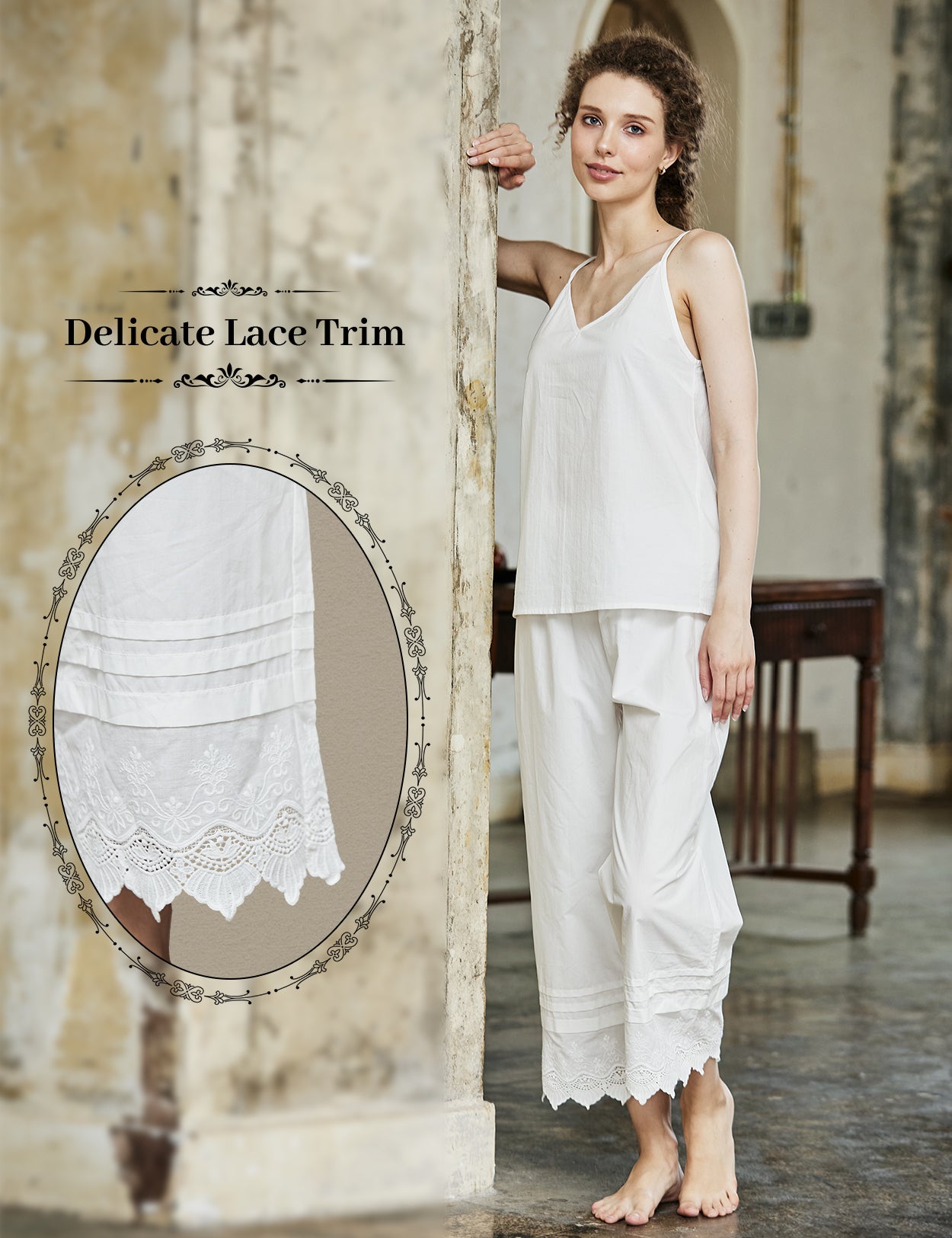 Culotte en coton à bordure de dentelle victorienne pour femme | Vêtements de nuit