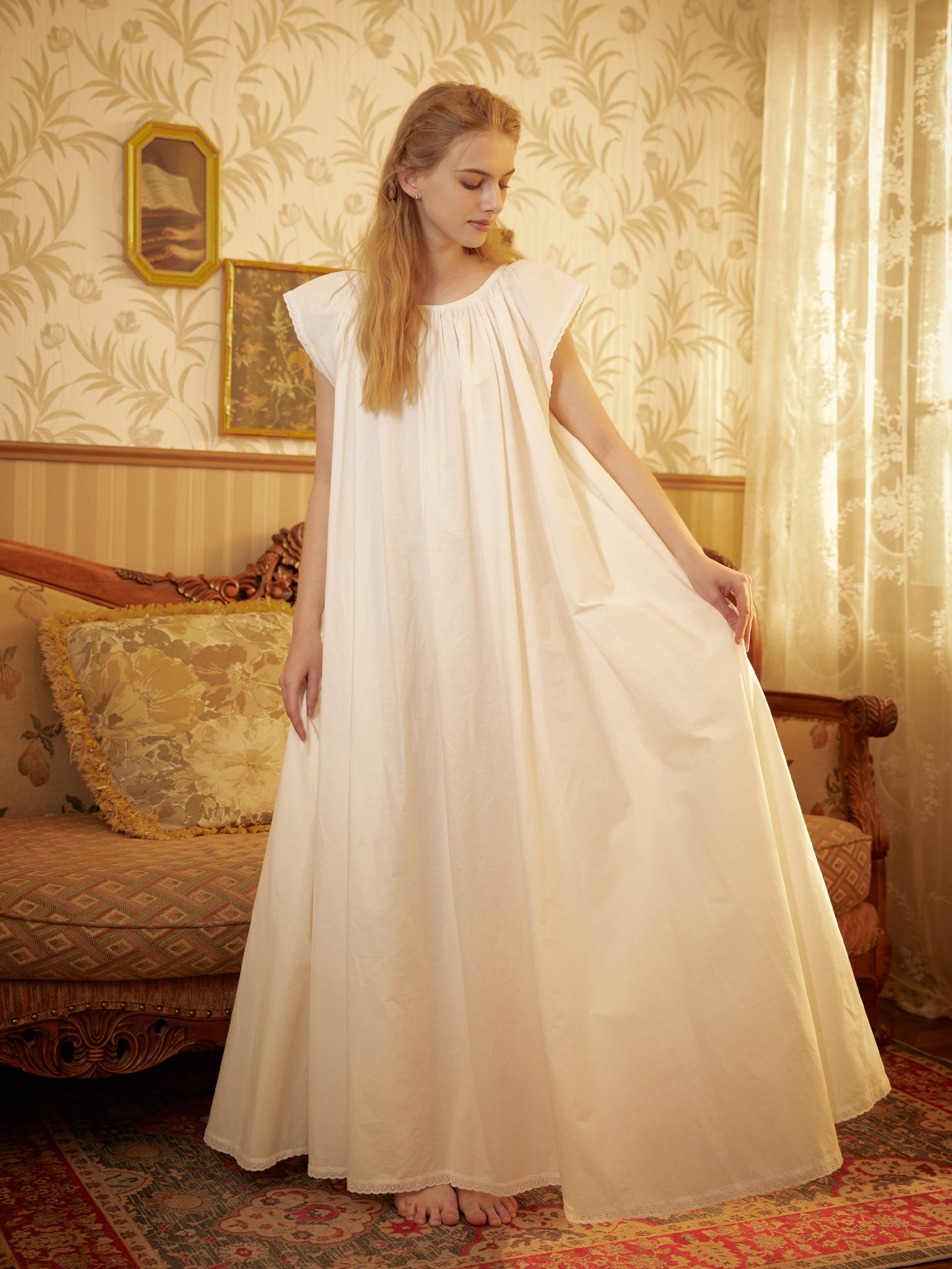 Chemise de nuit victorienne en coton, longueur au sol, Nachthemd