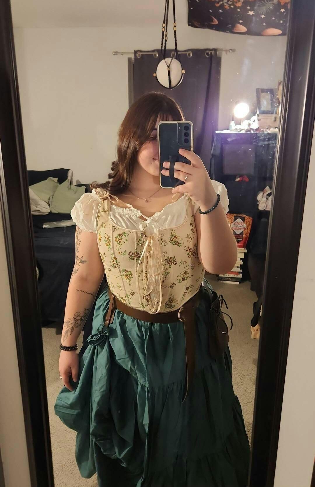 Plongez dans le passé avec notre jupe victorienne à fronces, où chaque point témoigne d'un savoir-faire exceptionnel. Laissez-vous séduire par l'élégance de cette jupe, ornée d'une ampleur gracieuse et de trois volants qui ondulent avec fluidité à chaque pas ou danse, vous assurant une présence captivante lors d'une fête médiévale ou de tout autre événement historique. Sa taille élastiquée garantit un ajustement parfait et un confort optimal. La polyvalence de cette jupe d'inspiration vintage est sans limite : elle peut se porter longue ou par-dessus une jupe longue à cerceaux. Son large ourlet de 105 cm (41 pouces) ajoute à son charme et se décline dans une palette de couleurs magnifiques telles que le vert chasseur, l'orange brûlé, le blanc, le bleu marine et le marron. Des fêtes ethniques aux cosplays d'Halloween, des séances photo aux spectacles, elle se transforme sans effort en jupe de pirate steampunk, en costume de fête médiévale ou même en paréo.